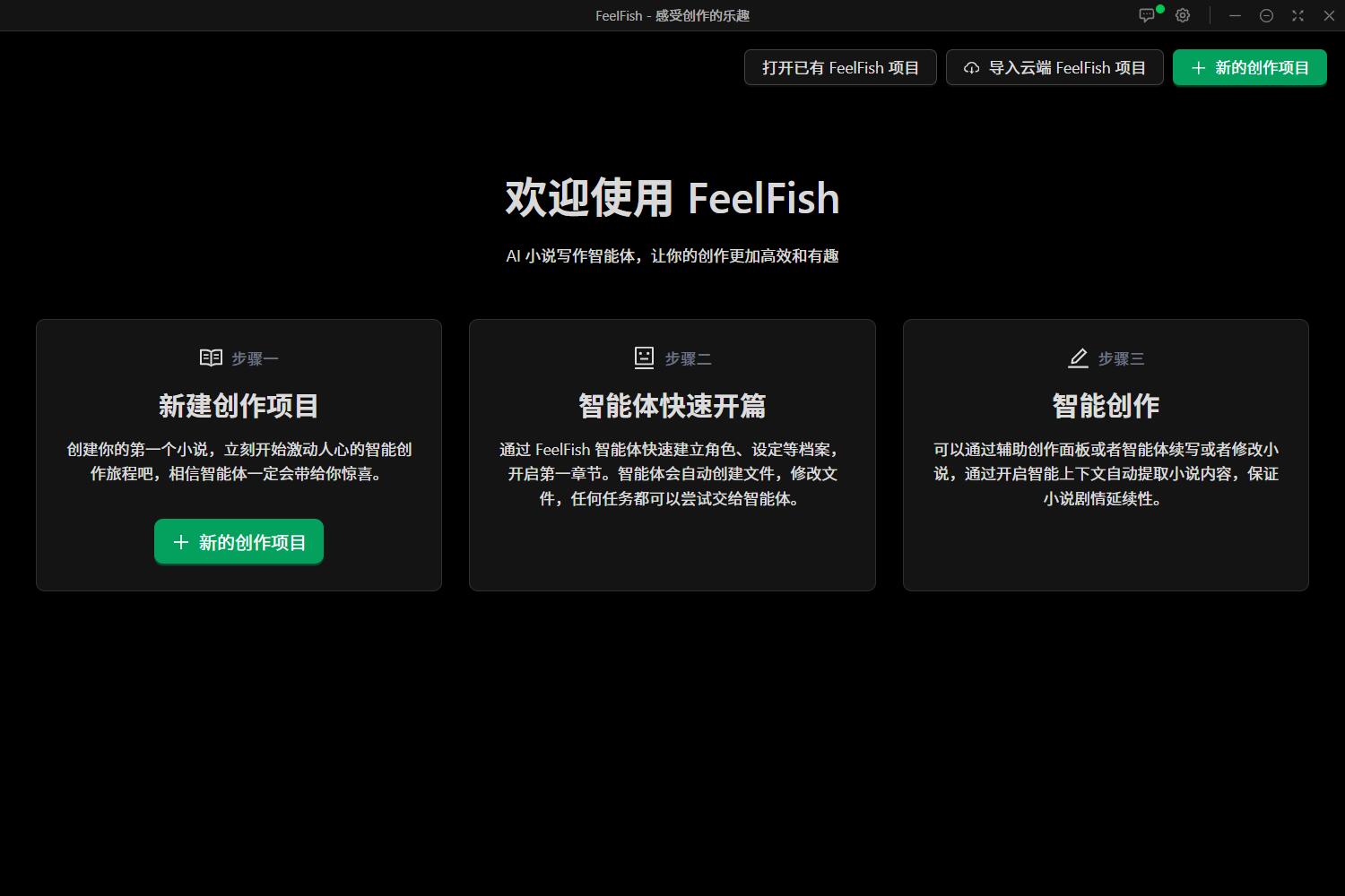 FeelFish(AI小说写作助手) v3.2.11 免费安装版FeelFish是一款聚焦小说创作全流程的 AI 智能辅助工具,它专为小说创作者打造,同时也支持剧本和非虚构类书籍创作,尤其擅长长篇内容的创作,它面向专业作家设计,基于 Feel...