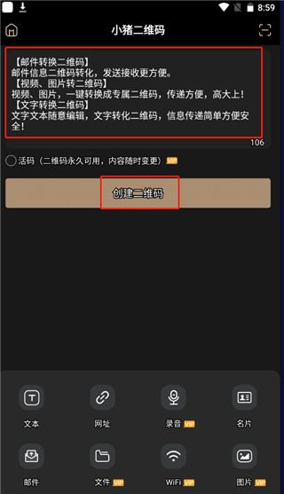 1、 支持创建文本和名片二维码