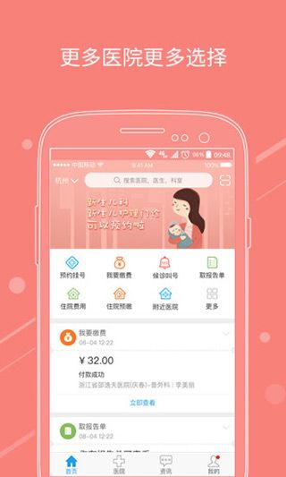 4、我们更用心:您能更轻松的预约挂号,更便捷的安全支付,更及时的查收诊疗通知,更深刻的感受到被关心。