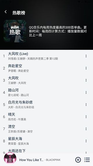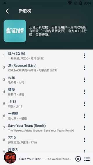 2、以新歌榜为例,用户能够选择新喜欢的歌曲来听;