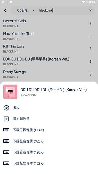 5、点击按钮可以播放、添加到歌单以及下载等,超多音质任你选,喜欢听音乐的朋友不可错过!