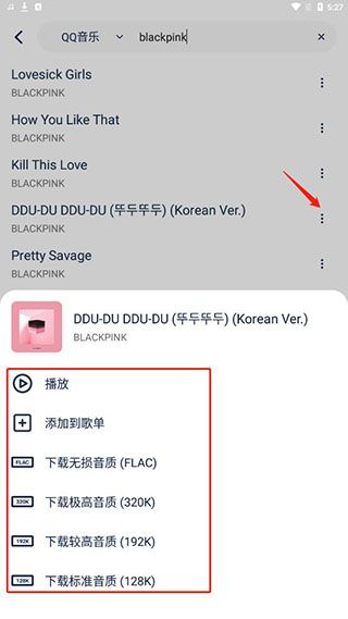 3、点击歌曲旁边的三个点,我们甚至还可以下载好自己最爱的歌曲至本地;