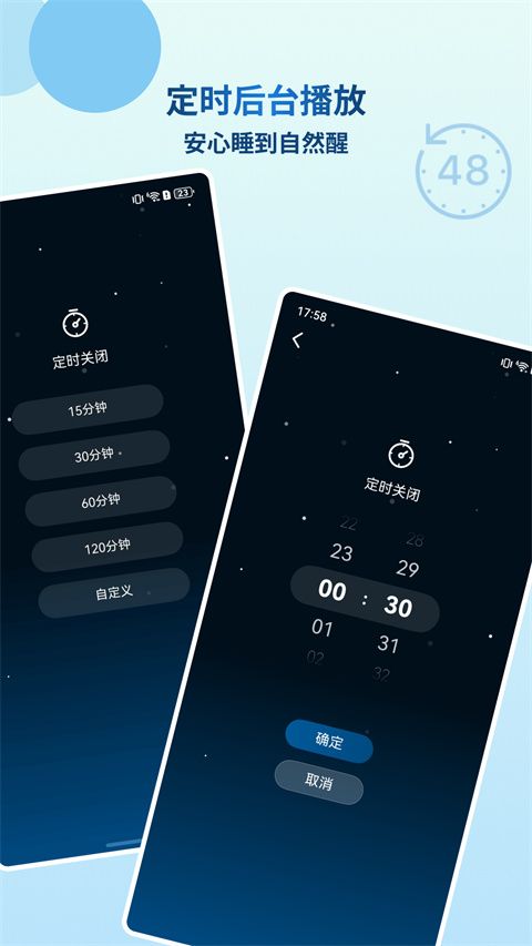定时关闭:支持设置自动停止播放,不用担心睡着后声音持续播放。