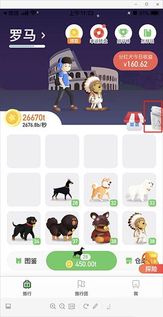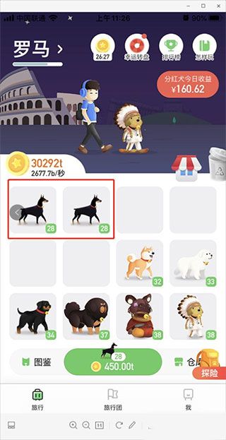2、而且,旅行世界等级越高的狗狗,产生的金币越多