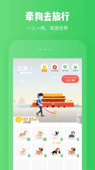 旅行世界是一款可以让你边旅游边挣钱的手机平台,你每到一个景点去旅游就相当于收集了一个地方,旅行的地方越多在软件中获得的奖励也就相应的越多,反正也不损失什么,何乐而不为呢。并且,和同类软件相比,大家在这里将会获得平台免费赠送的狗狗,你挣钱的多少和它有着密不可分的关系,狗狗的登记越高,用户旅游 行动中赚钱就越多,让你每日遛狗赚钱,享受月入万元不是梦。不仅如此,旅行世界还可以为你制定旅行方案和旅行计划,可以为你提供机票的预订,酒店的预订等服务,让你轻轻松松玩遍大江南北,需要的赶紧来下载吧。