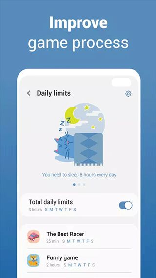 5、每日限额,就是限制玩游戏的日期以及时间。可以选择设置所有游戏打开总的使用时长,也可以选择单独的游戏的使用时间,到达每日的限额时间过后就会收到限制的通知。这个功能可以为一些缺乏自制力的人提供提醒一个平台,但是至于是否要继续玩下去,还是看个人,有些朋友玩游戏总是会不知不觉的忘记时间,这个就可以比较合理的安排自己的游戏时间了。