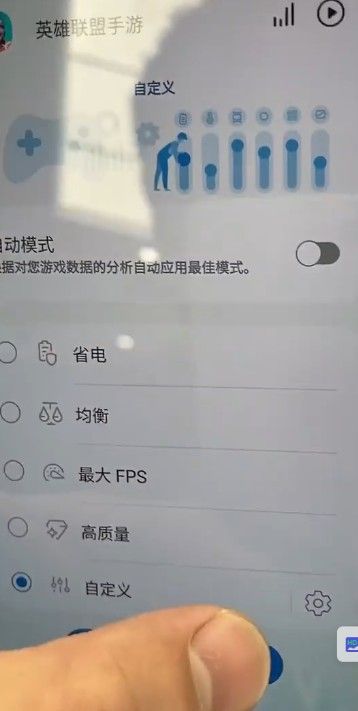 5、以英雄联盟手游为例,有省电、均衡、最大fps、高质量、自定义。