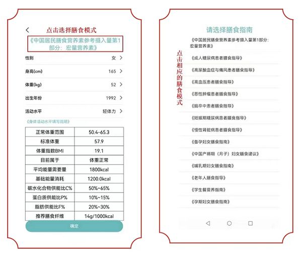 1、点击‘我的一基础信息”, 进入基础信息填写界面。点击最上方选择膳食模式。