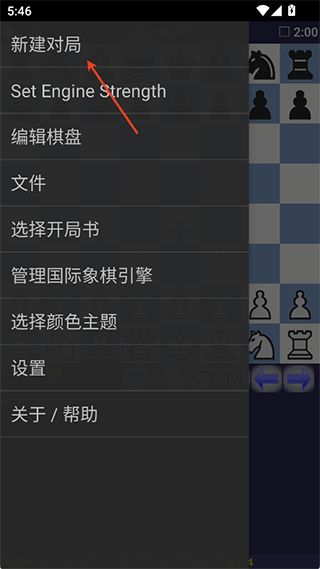 打开应用后,点击左上角的菜单按钮,选择新建对局。你可以选择与引擎对弈,或加载已保存的棋局。