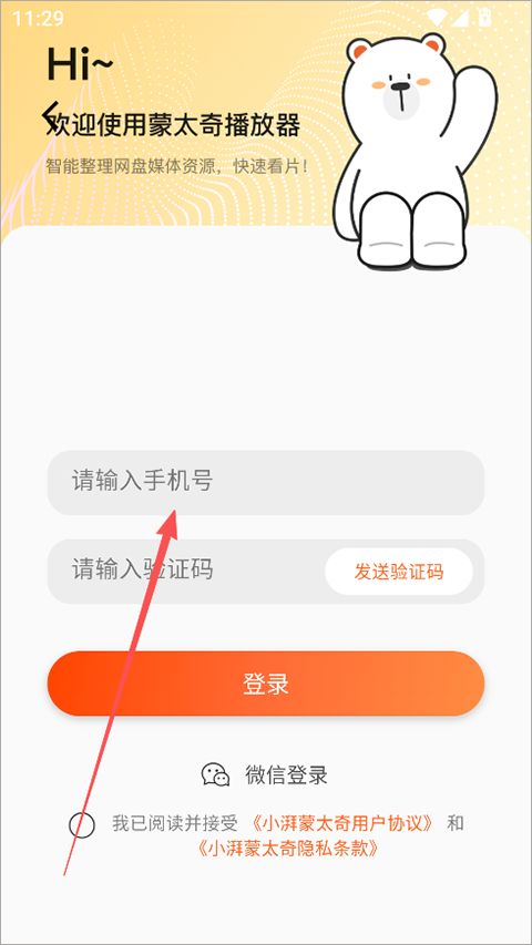 1、输入手机号再点击发送验证码点击登录按钮进入。