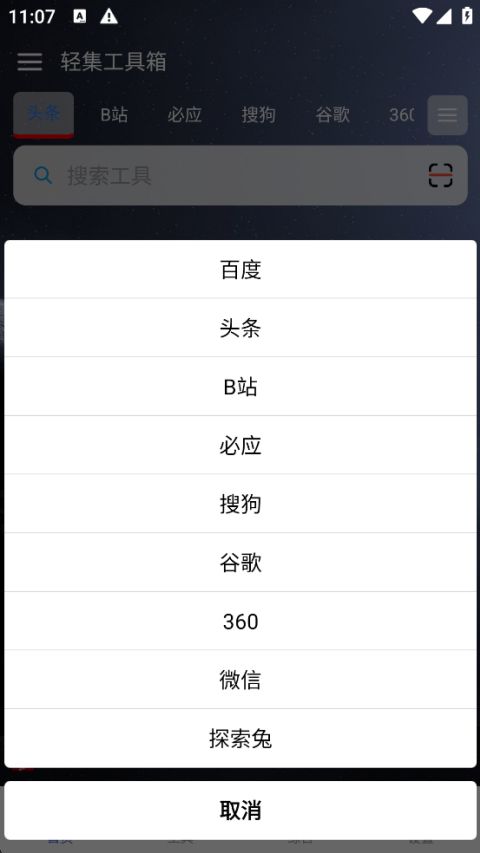 除此之外,轻集工具箱还具备了强大的搜索引擎聚合功能,包含了百度、搜狗、b站、必应等主流引擎,用户可以自由选择不同的搜索引擎来查找自己想要的东西,有兴趣的小伙伴可以来下载体验。