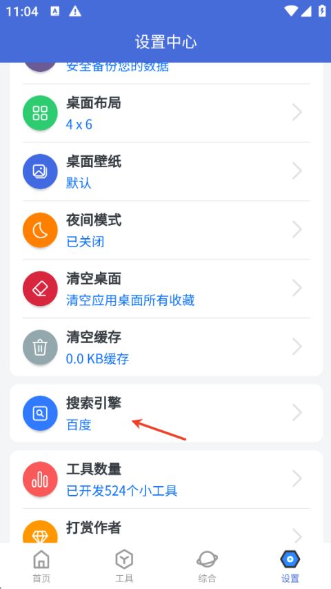 1、打开软件之后来到设置界面,点击搜索引擎。