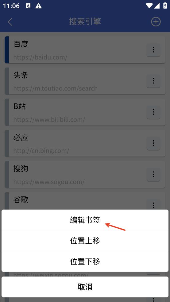 4、或者点击下面引擎旁边的三个点,选择编辑标签也行。
