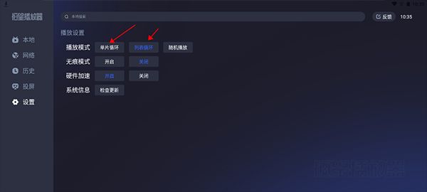 用户在电视版恒星播放器的设置页面中开启单片循环或列表循环即可