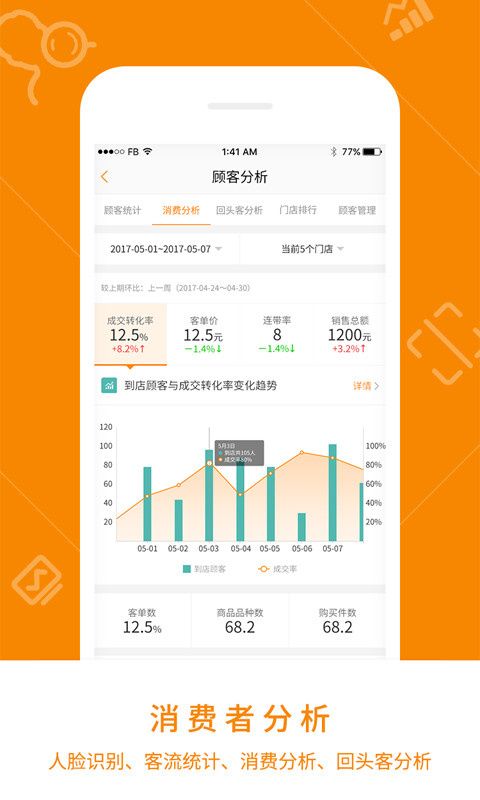借助AI识别等先进技术及算法,通过精准客流、回头客分析、用户购买行为分析、VIP会员识别及未来即将实现的AI支付等手段,帮助门店经营者了解顾客,以数据为基础提高门店服务水平,提升用户消费体验,提升门店营收。