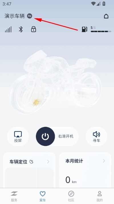 2、在app的【爱车】界面,用户可以绑定自己的机车,绑定时需要启动机车,并且开启手机蓝牙,以便机车通过手机蓝牙进行连接。机车绑定时用户参考车辆绑定事项,看完后可以让你正确且快速地绑定自己的机车。