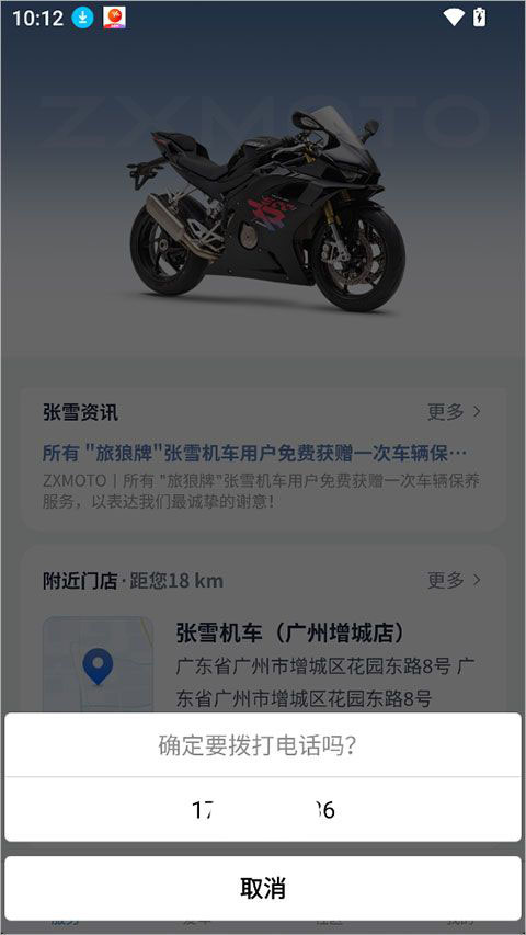1、打开登录张雪机车app首页可以根据手机定位推荐附近张雪机车门店,你可以直接获得门店联系电话进行机车的订购、试驾。
