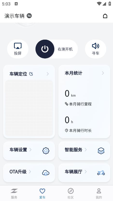 3、机车连接后即可对车辆进行参选参数设置、ota升级等智能控车服务,还有寻车功能让用户在户外能够快速寻找到自己的机车。