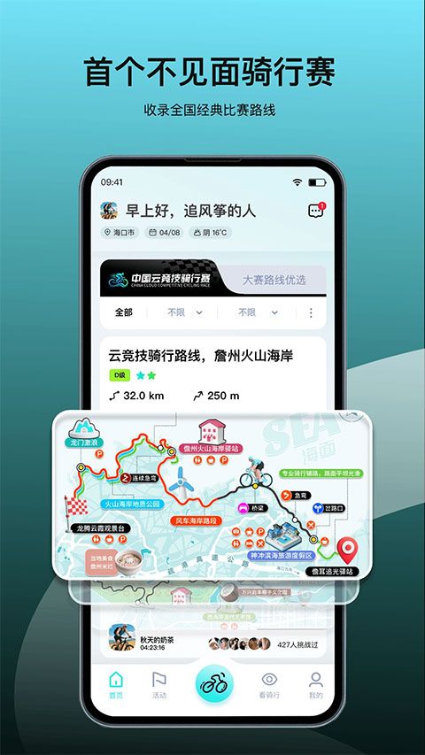 平台优选复刻了多条环岛赛经典路线,让用户能够在椰风海韵中自由开赛、无限参与,提升了比赛的体验感。