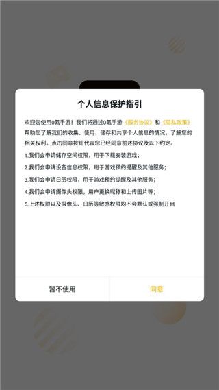 1、在本站下载0氪手游app后点击打开并同意协议;