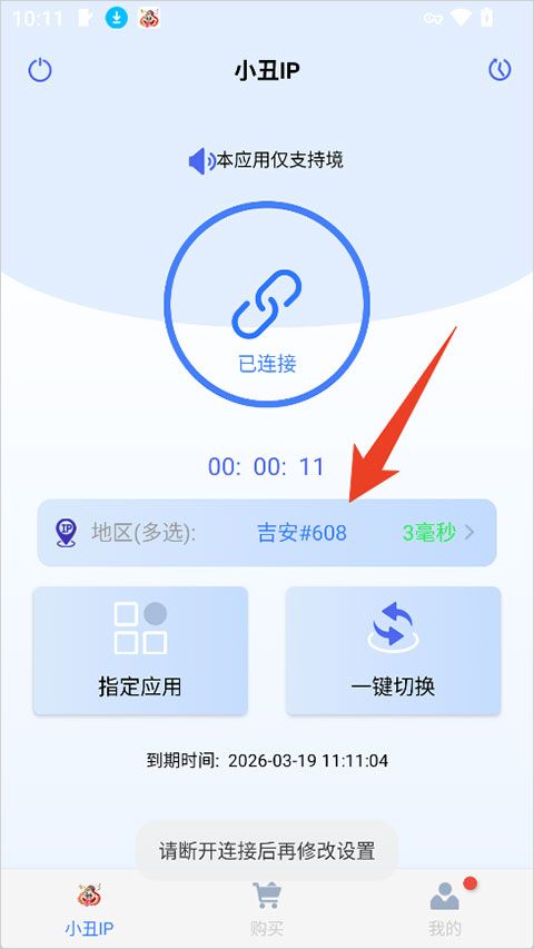 开关默认关闭时,手机所有应用均通过小丑IP代理。