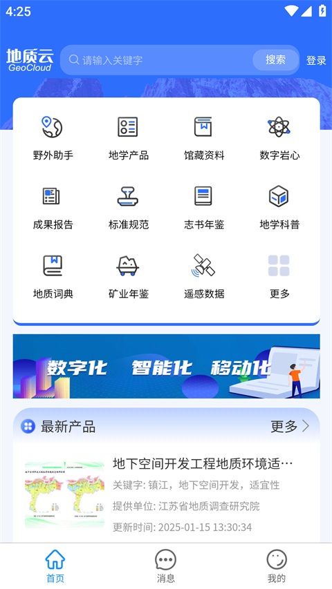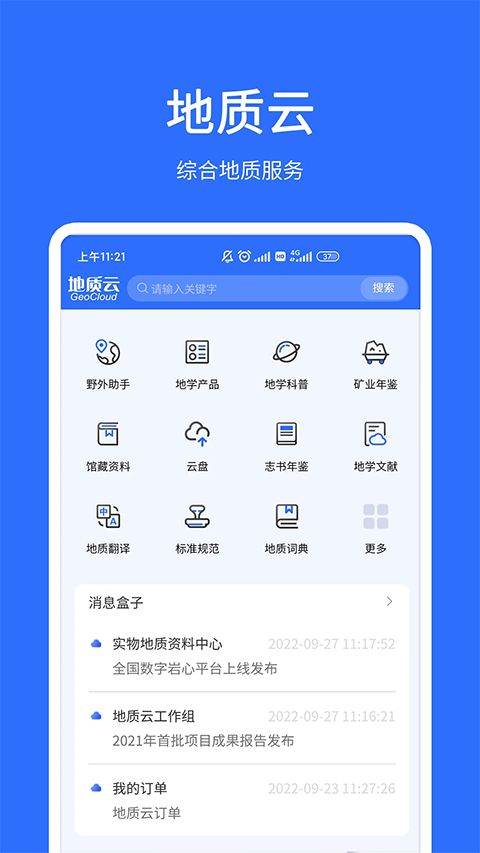 提供地质词典、野外助手、地质图件筛选等功能,支持专业软件(如大型分析工具)和仪器设备的在线共享