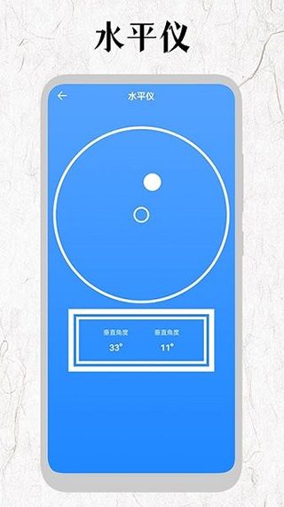 3、水平测量:用户可以使用此功能校正标准水平面上的对象。例如,各种家用悬挂物可以使用该软件测量它们是否平坦,并进行相应调整。