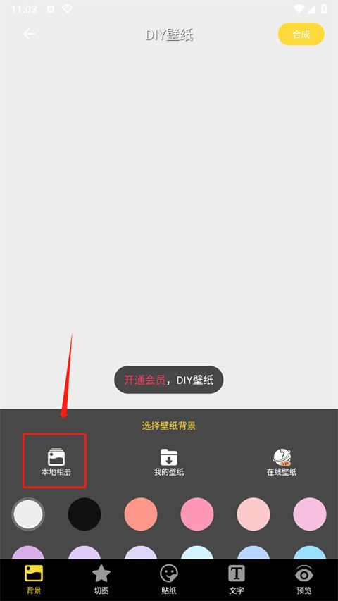 3、然后使用底部工具栏对壁纸进行编辑后,点击右上角合成按钮即可