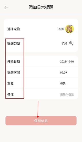 2、之后可以按照要求填写好宠物信息,点击下方保存即可。