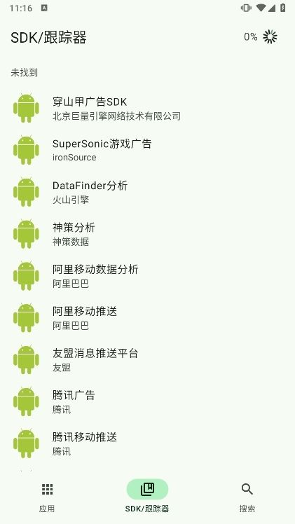 1、打开app并默认进入到【应用】界面,这时候它会进行初始化操作,等它将所有应用程序刷新之后,并授予一定的权限之后就可以开始关闭广告了。
