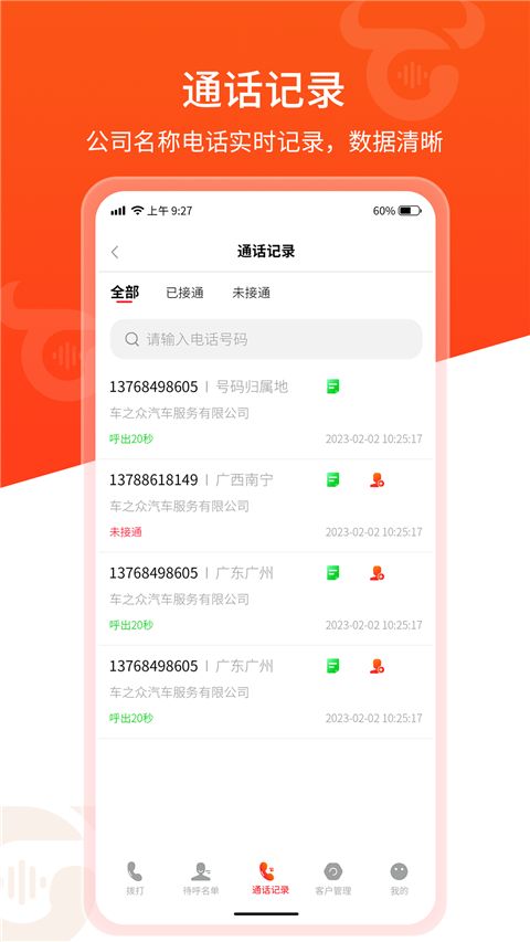 1、自动拨打功能强大,减轻人工操作负担,提高效率。