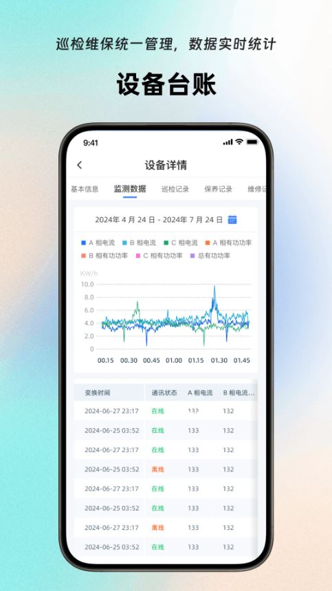 还可以对设备台账进行数据监测,轻松进行实时监测统计。