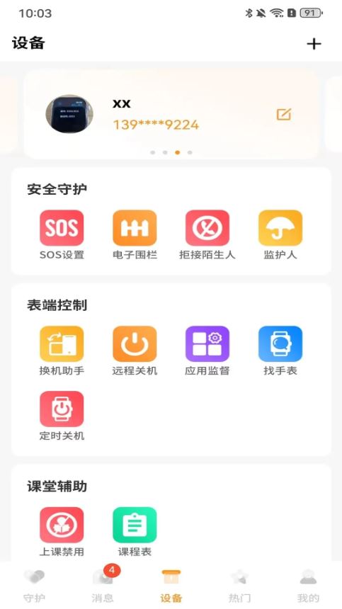 sos设置、电子围栏、表端短信、监护人、拦截陌生来电。