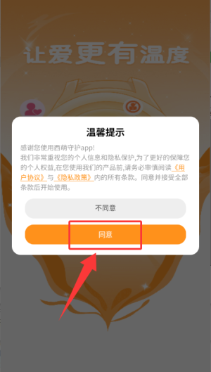 1、在温馨提示窗口点击"同意",即可进入应用。