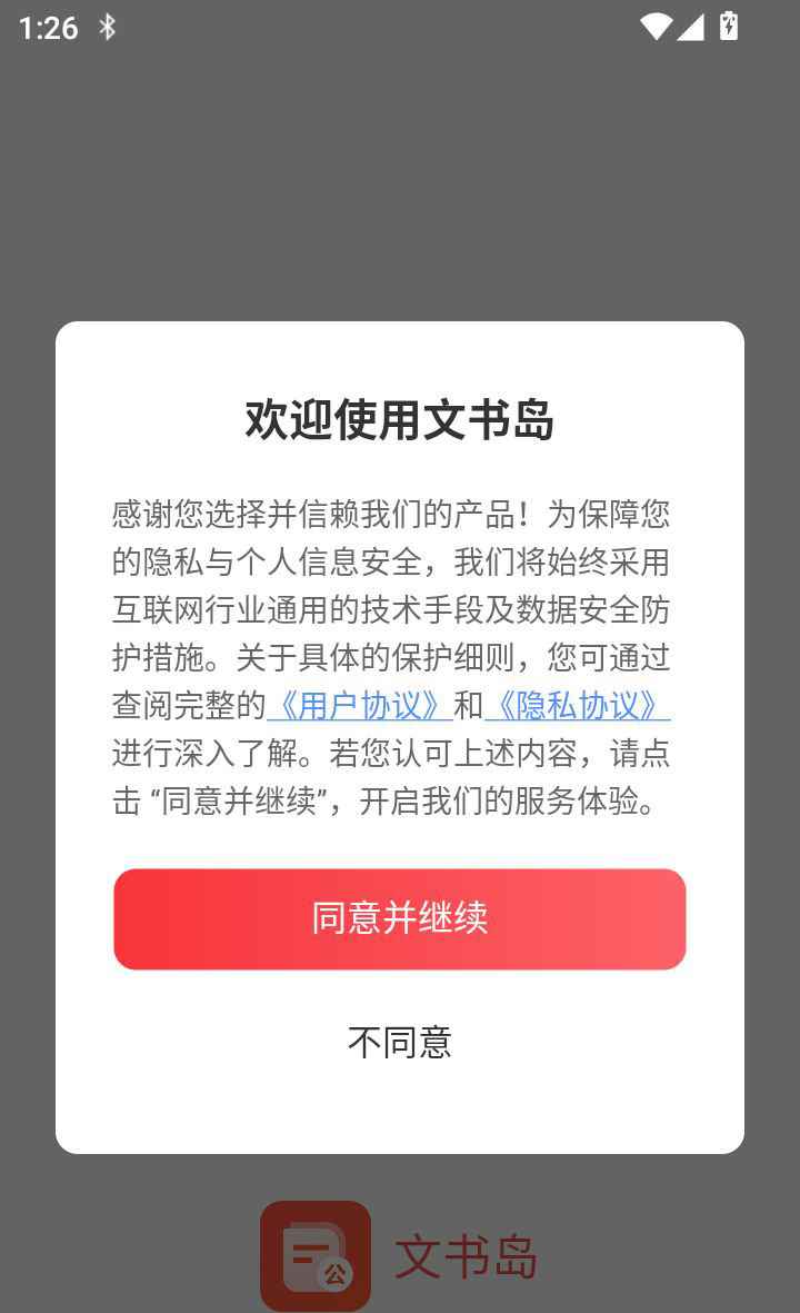 1、下载打开APP,阅读隐私协议内容并点击“同意并继续”即可进入软件;