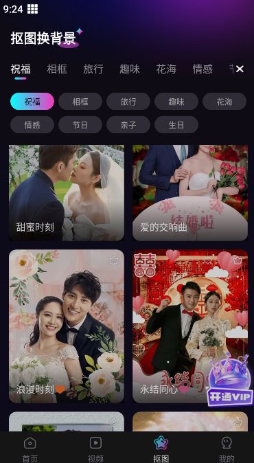 3、在抠图中有着许多背景素材与精美相框供你使用,让你装裱照片,为图片填些精致,做精致酷孩er。