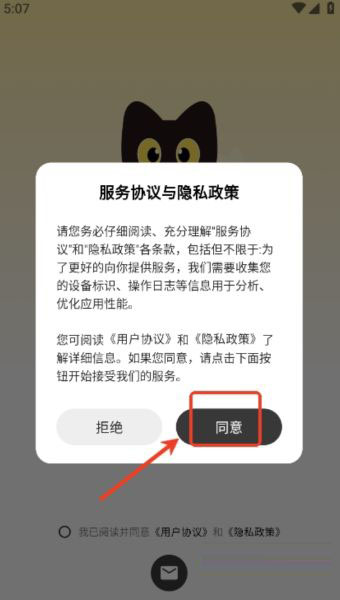 打开app,用户们先点击“同意”,同意软件协议政策