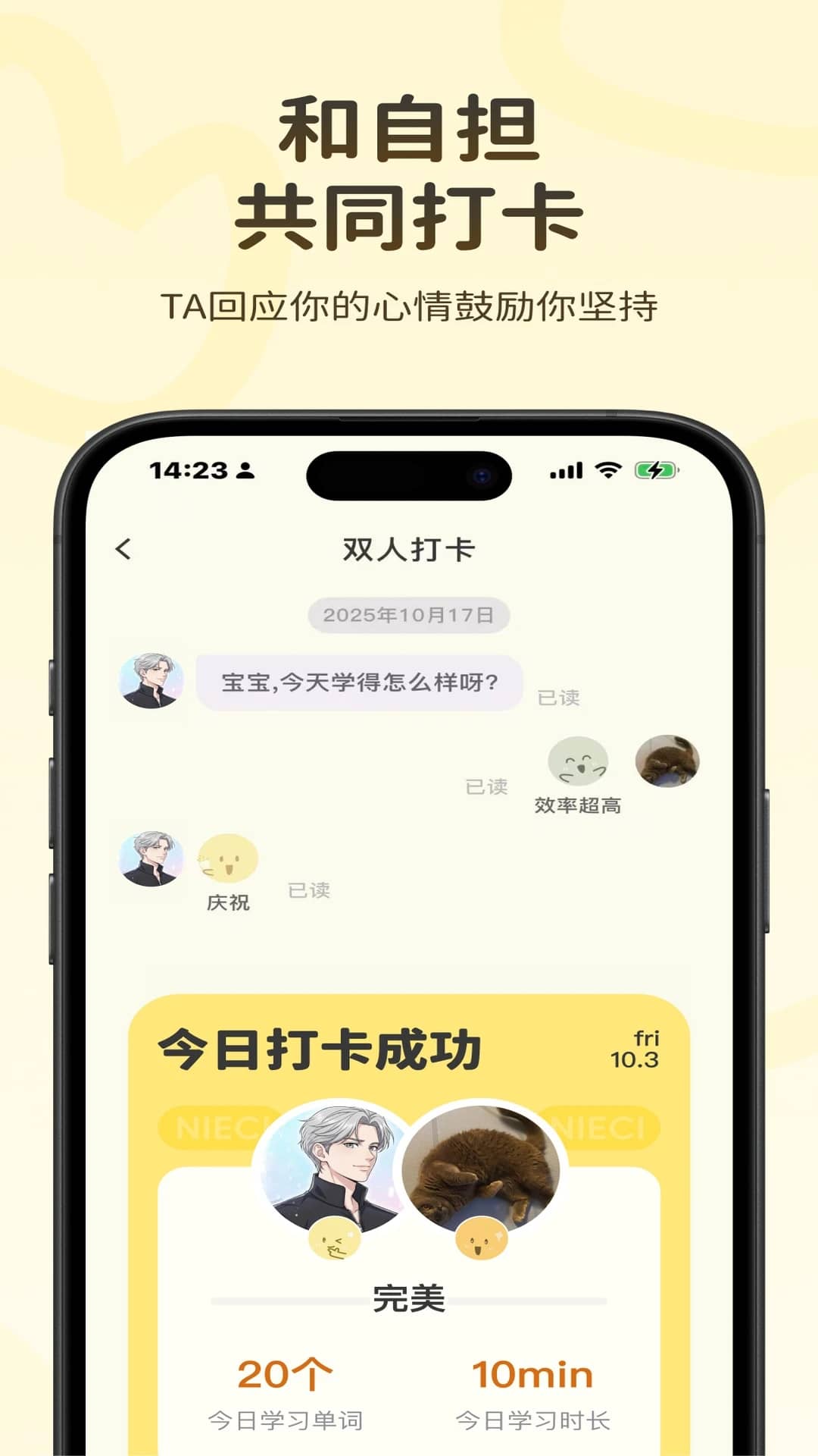 双人打卡:和自担一起完成打卡,仪式感满满