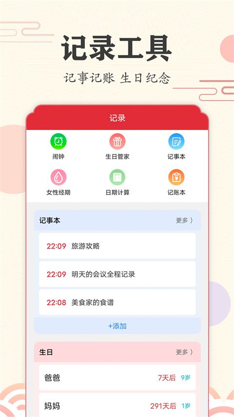 贴心农历提醒的功能,照顾每个人的中国情节。