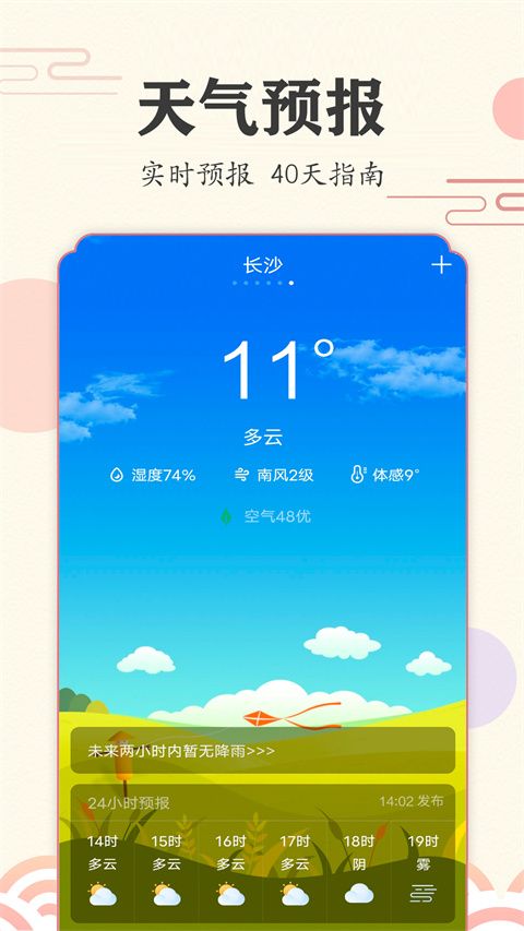 时光日历app提供未来15天的精准天气预报,出行旅游逛街约会运动天气早知道