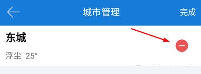 2、进入城市管理页面,点击右上角的【编辑】,然后所有城市都会弹出红色删除图标,点击即可删除城市,当然了无法将城市全部删光,至少保留一个城市。