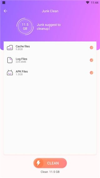 1、垃圾清理:对应用程序的缓存和垃圾文件进行准确地分析。一键清除应用和系统的垃圾文件,以释放存储空间。