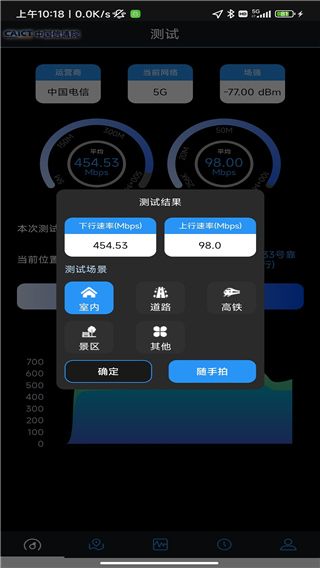 5G云测APP是一款由中国信通院发布的可以轻松测试手机网络网速的测试软件,可用于一键智能测试网络时延、上传速率、下载速率的测试工具。信号不好时就可以使用软件查看网速情况,随时知晓网速变化,让网速测试更加轻松!5G云测app还可以轻松查看历史测试记录,便于用户更好的知晓网速哦!针对5G网络识别NSA/SA组网方式,展现当前网络状态,自动统计手机5G时长占比。5G云测APP可以随时选择wifi或者运营商进行测试,实时查看当前网络连接状态,随时进行网络测试,可以了解上传和下载的速度,还可以定位选择测试服务器,实时记录测试数据,可以随时查看。对此有需要的用户快来下载使用吧!
