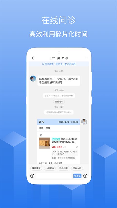可以在线对患者开具电子处方内容,以此来让患者自行到店抓取药物进行治疗。