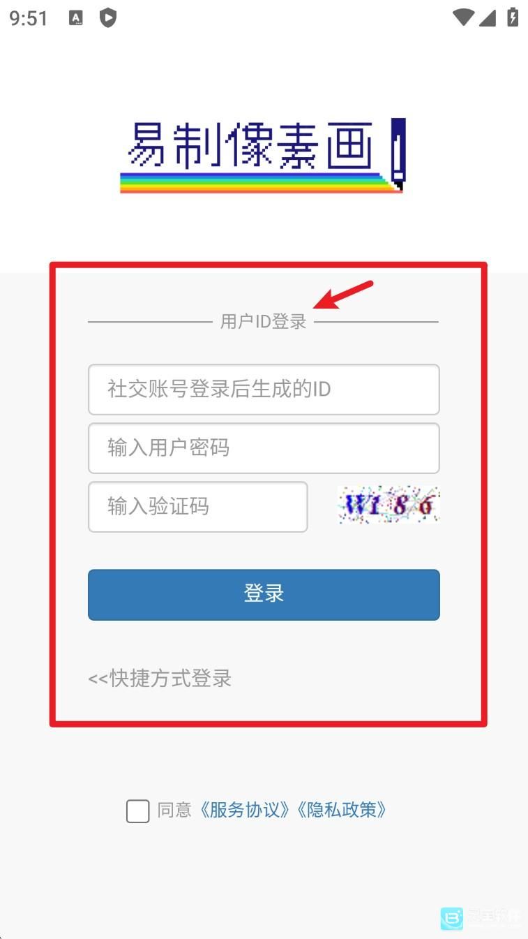 2. 若已有账号可切换至“用户ID登录”,输入 ID、密码与验证码,点击蓝色按钮进入主页。