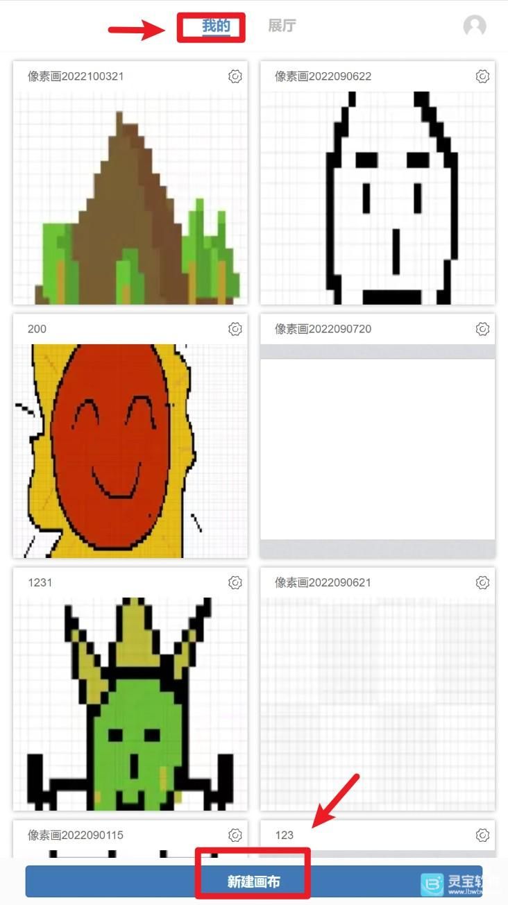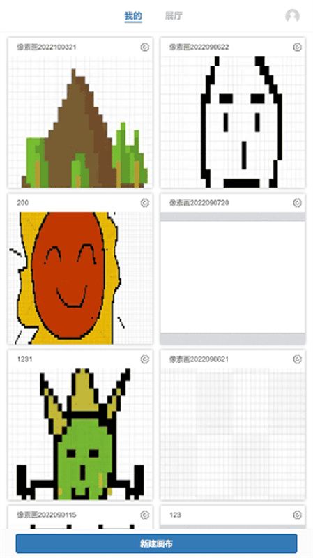 3. 登录成功后点击上方“我的”标签页,即可查看自己创作过的所有像素图稿。