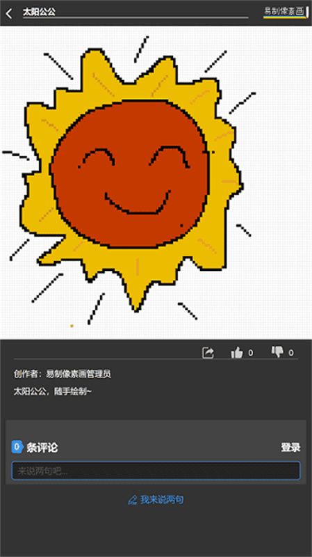 易制像素画app是一款相当不错的像素画绘画类型软件,在这款软件之中也是专门为了喜欢进行像素化绘画的用户进行设计的,你可以会直接的在这里自由的进行像素化的创作以及编辑,直接的在手机上创造出自己想要绘画的像素画出来,随时随地的更改像素化的布局和风格,发现各种优秀的像素画作品。易制像素画app之中还可以直接的进行内容的下载,将其分享给不用的好友一起的体验吧。