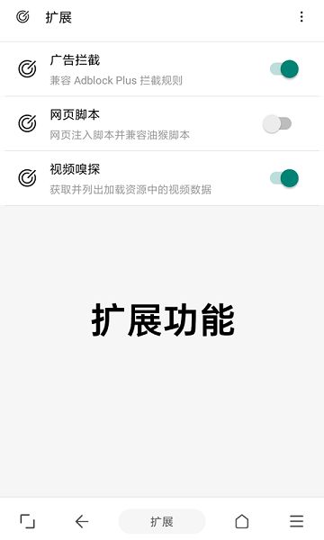 小巧简洁,功能丰富强大的手机浏览器。它页面清新简单,支持诸多自定义功能。eie除了基本的搜索功能,还可以嗅探网页资源、悬浮视频、网页翻译等等功能。