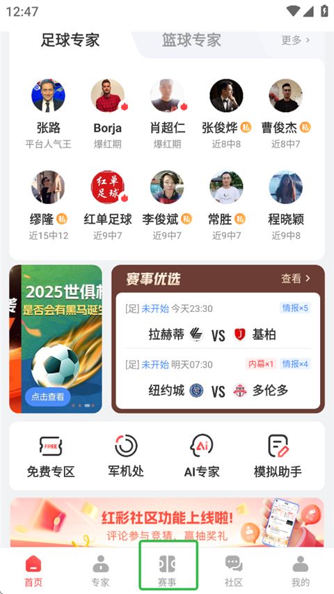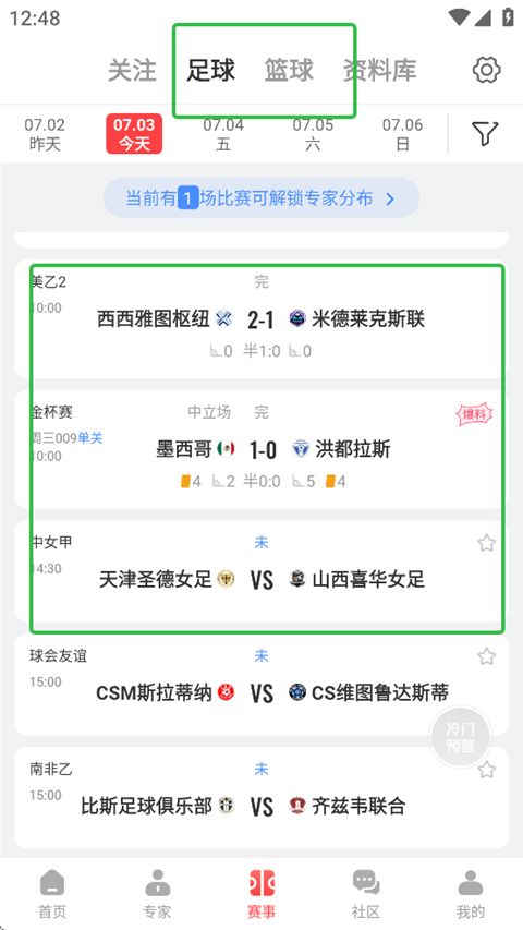 2、选择足球或者篮球比赛,点击想看的赛事。