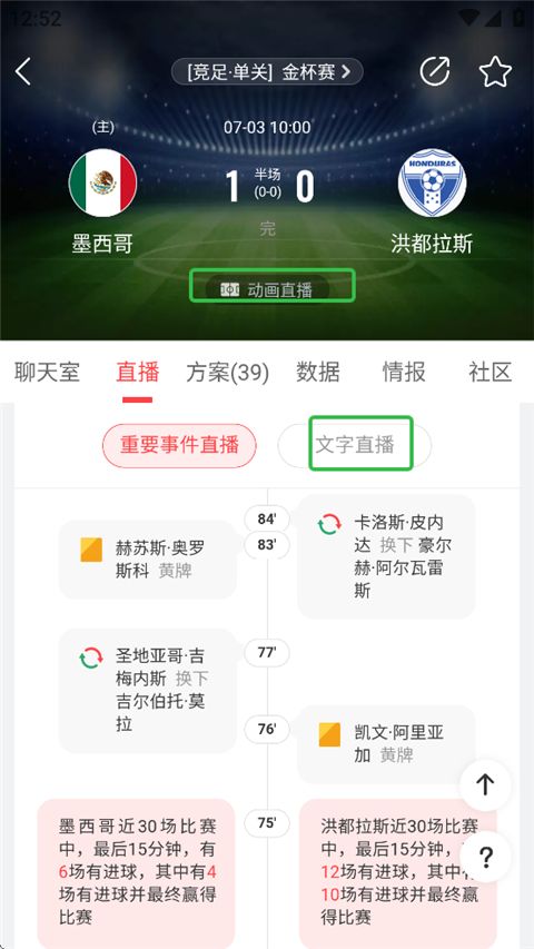 3、用户可以点击【动画直播】进行观看,也可以点击文字直播查看。